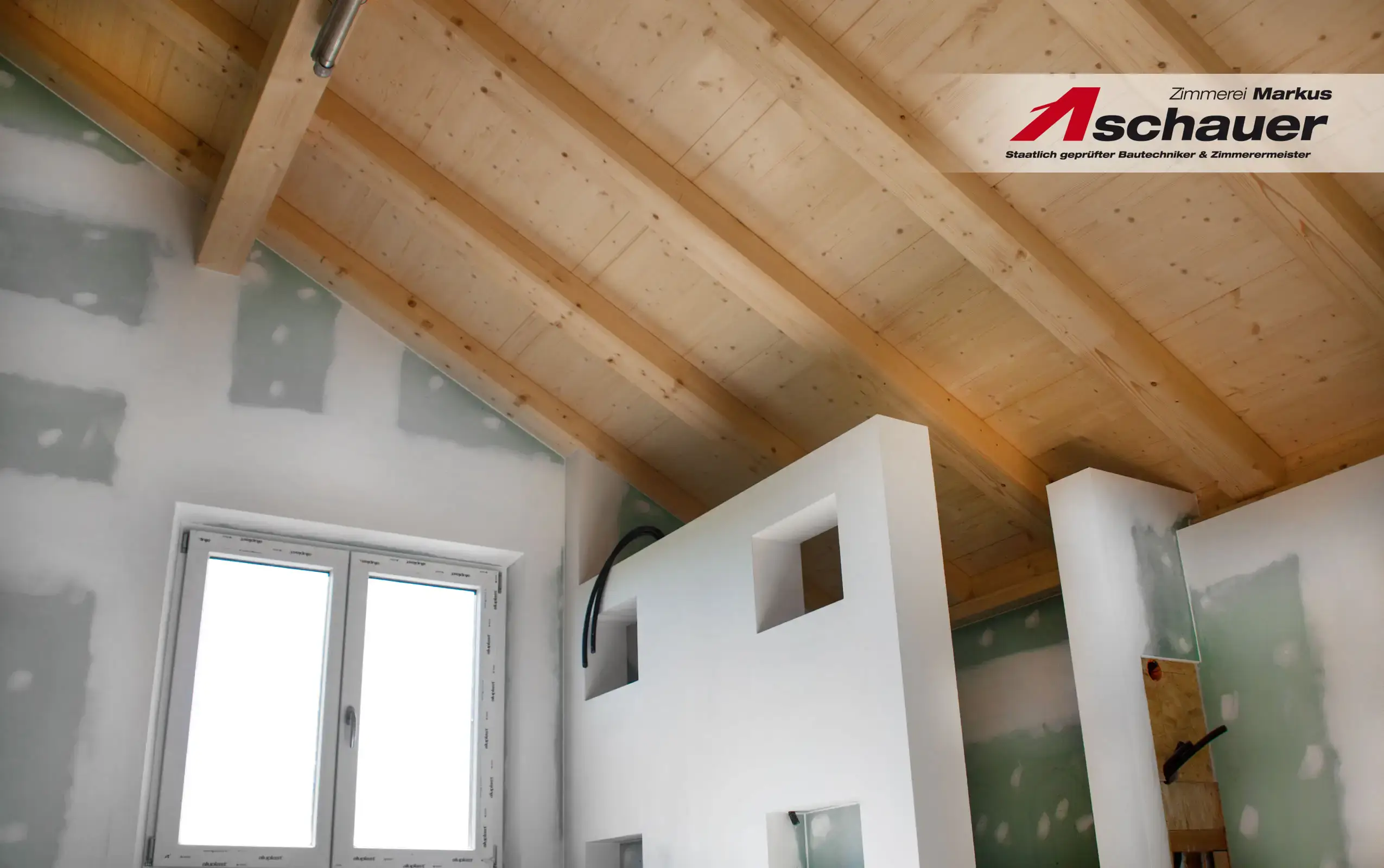 Komplettsanierung eines Einfamilienhauses mit Aufstockung in Ständerbauweise inklusive Sichtdachstuhl mit Quergiebel und Innenausbau in Trockenbauweise.